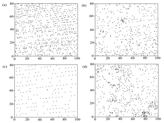 - Diggle, P.J. Statistical Analysis of Spatial Point Patterns; Hodder Arnold: London, UK, 2003. [Google Scholar]