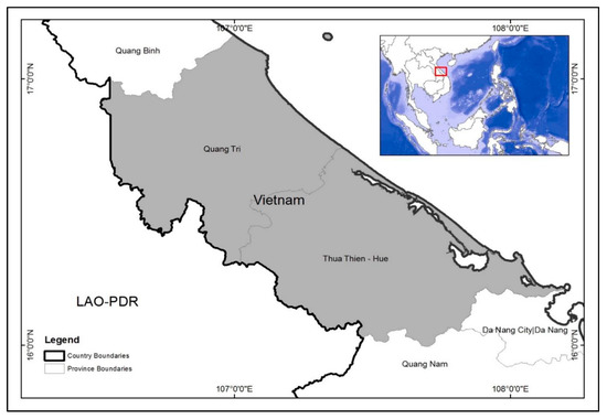 - Anh, H.V.; Ty, H.X.; Son, V.T.; Thanh, L.V. A Mapping of Ecosystem Services in Quang Tri and Ha Tinh Provinces, Vietnam; RECOFTC—The Center for People and Forests: Bangkok, Thailand, 2015. [Google Scholar]