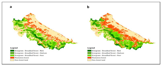| Poor forests | These are natural evergreen and broadleaf forests with average standing timber stock < 100 m3 ha−1 that have been altered by logging and human activities. They have started to revive through the process of natural regeneration. These forests can be considered degraded forests. |
