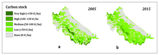 | Land Cover Type | Carbon Stock (tC/ha) 2005 | Carbon Stock (tC/ha) 2015 |