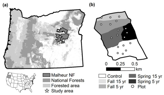 - Thies, W.G.; Westlind, D.J.; Loewen, M. Field Note: Impact of spring or fall repeated prescribed fire on growth of ponderosa pine in eastern Oregon, USA. West. J. Appl. For. 2013, 28, 128–132. [Google Scholar] [CrossRef]