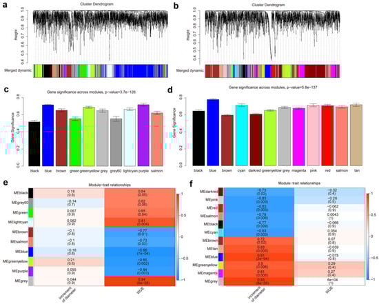 - Langfelder, P.; Horvath, S. WGCNA: An R package for weighted correlation network analysis. BMC Bioinform. 2008, 9, 559. [Google Scholar] [CrossRef]
