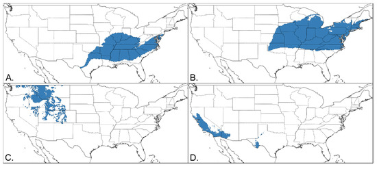 - Little, E.L., Jr. Atlas of United States Trees. Volume 4. Minor Eastern Hardwoods; Misc. Pub. No. 1342; Department of Agriculture, Forest Service: Washington, DC, USA, 1977; p. 17.
