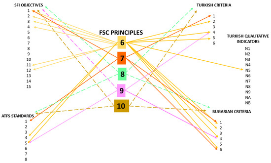 The associations between the FSC program principles and the objectives, standards, criteria or principles of the other programs is complex (Figure 1 and Figure 2). In the following subsections, we describe the main similarities and differences among these, with each FSC principle as a reference point (see also Table 4).