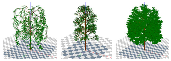 Figure 2 shows three different tree species generated with the L-System. Using the L-System skeleton, the LAD cluster is then derived, depending on the actual model areal resolution.