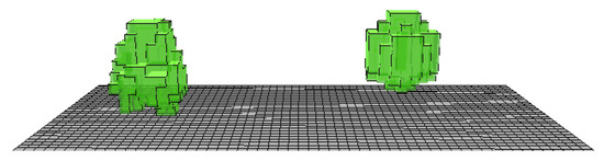 Simple model area for the Proof-of-concept simulations. (Left): Deciduous L-Tree; (Right): deciduous Parametric-Tree.