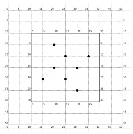 Example of plot design (distances in m) and standard distribution of collectors in the sampling plots [29].