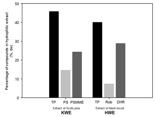 - Vek, V.; Poljanšek, I.; Oven, P. Variability in content of hydrophilic extractives and individual phenolic compounds in black locust stem. Eur. J. Wood Wood Prod. 2020, 78, 501–511. [Google Scholar] [CrossRef]