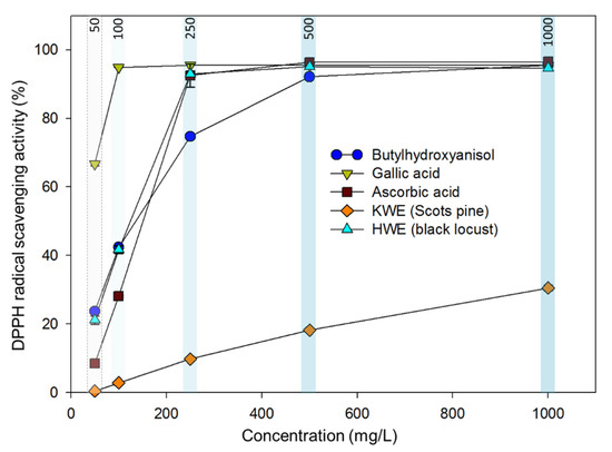 - Belt, T.; Hanninen, T.; Rautkari, L. Antioxidant activity of Scots pine heartwood and knot extractives and implications for resistance to brown rot. Holzforschung 2017, 71, 527–534. [Google Scholar] [CrossRef]