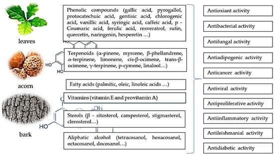 Large areas of oak forests, large amounts of forest waste (oak bark and leaves) resulting from wood processing, high availability and their drought resistance make Quercus species important sources of bioactive compounds.