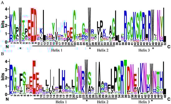 - Crooks, G.E. WebLogo: A Sequence Logo Generator. Genome Res. 2004, 14, 1188–1190. [Google Scholar] [CrossRef] [PubMed]