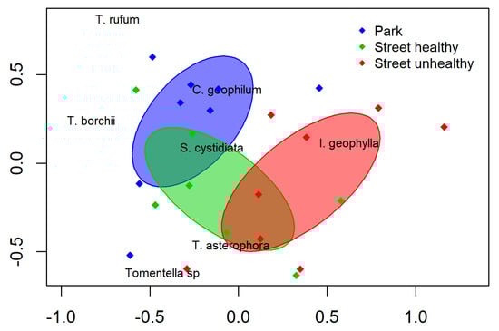 - Timonen, S.; Kauppinen, P. Mycorrhizal colonisation patterns of Tilia trees in street, nursery and forest habitats in southern Finland. Urban For. Urban Green. 2008, 7, 265–276. [Google Scholar] [CrossRef]