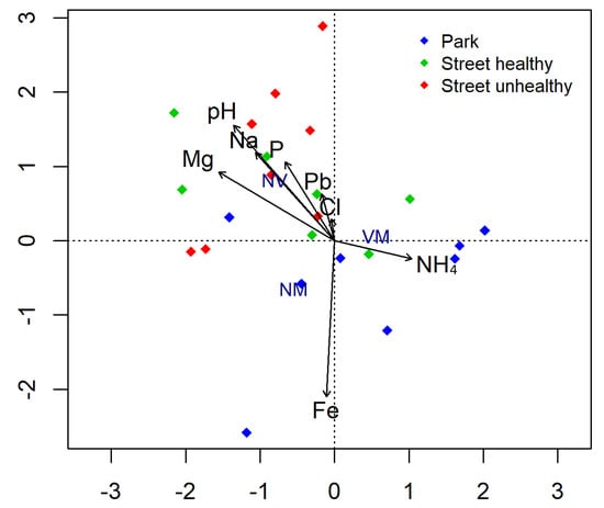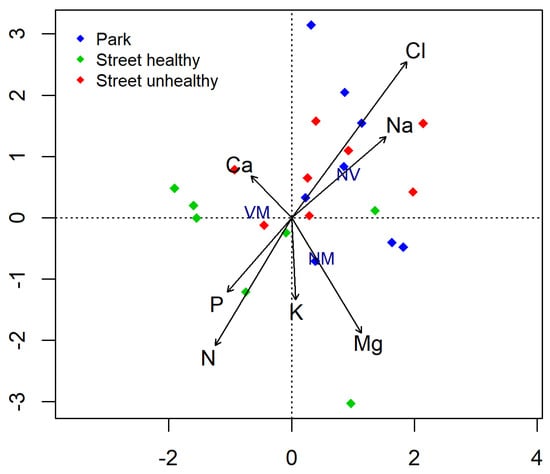 - Kleiber, T.; Krzyżaniak, M.; Świerk, D.; Haenel, A.; Gałecka, S. How does the content of nutrients in soil affect the health status of trees in city parks? PLoS ONE 2019, 14, e0221514. [Google Scholar] [CrossRef]