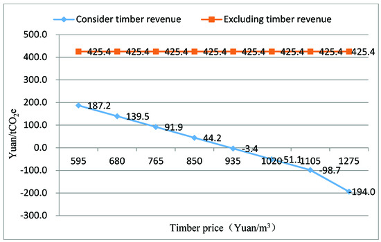 3.2.4. The Sensitivity of Carbon Sink Costs to Changes of Timber Prices