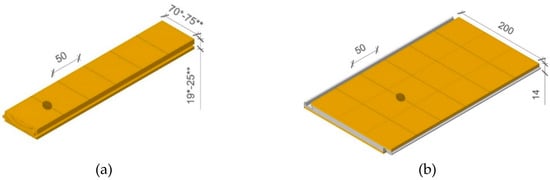 Two wood flooring types, solid wood and engineered wood, were tested. Both types were made specifically for this research. The engineered wood floorings were made up of three layers. A noble top layer of 3 mm thickness of manufacture with one of the hardwood species was analyzed. In the middle, a support layer of 9 mm thickness of waterproof high-density fiberboard (density of 850 kg·m−3). There was an additional bottom veneer layer of 2 mm thickness of Pinus radiata D. Don (density of 500 kg·m−3). All wood layers were glued with urea–formaldehyde resin type E1. The main specimen characteristics are shown in Table 1.