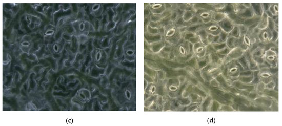The example of the collected black poplar images. (a)–(d) are observed in the different degree of illumination and different stomatal aperture.