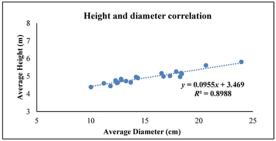 Figure 5 represents the correlation between the parameters of tree as specified in Table 3 and Table 4. There is a good correlation between the height and diameter I-e 0.89, and this does not vary among the allometric equation. This shows that the height of the tree increases with the increase in diameter of the juniper tree.