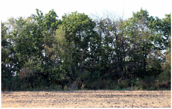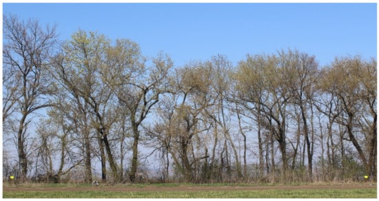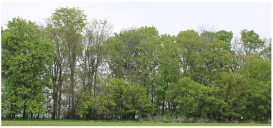 Vegetation is considered a significant landscape element. Elements of greenery form the landscape scenery and fulfil productive and eco-stabilising functions. Trees and shrubs play an important role in the environment and living conditions of other organisms. Short-term changes in the ecosystems do not have significant impacts on their life cycle and vitality. However, landscapes modified by human civilisations on all continents have been gradually transformed into enormous agricultural expanses, where the native and natural ecosystems have been reduced to small, isolated areas. The functionality of these ecological systems is often seriously threatened. One of the concepts associated with the preservation and reinforcement of ecological stability is the ecological network (EN), broadly defined as a network of localities that have been interconnected to enhance the protection of biological diversity. The basic prerequisite for the preservation of the landscape ecological stability is the existence of landscape elements and segments possessing higher inner ecological stability compared to the surrounding landscape. All EN projects in Europe, from the continental to the national level, are devised to encompass, at least, the basic necessary areas and corridors of the green infrastructure [1]. The structural parts of EN, i.e., the ecologically significant landscape segments, can be classified according to several criteria. According to their function, these elements can be classified as bio-centres, bio corridors and interactive elements. In the Czech Republic, the creation of the concept of EN was initiated in the 1990s [2]. Effective utilisation and design of EN require the knowledge of the morphological characteristics, as well as biological and ecological properties of woody plants [2]. These ‘Territorial Systems of Ecological Stability in the Landscape’ have been designed according to five basic criteria: diversity of potential natural ecosystems, the spatial relationship of the biome in the landscape, spatial parameters, the current state of the landscape, and socioeconomic limits and intents [3,4]. Such elements also include windbreaks, which fulfil many important functions in the landscape.
