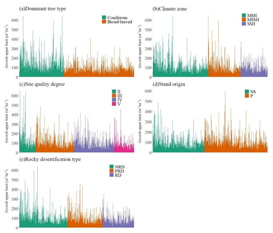 4.2. Environmental Effect on Stand Volume in Guizhou Plateau