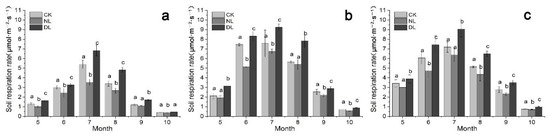 - DeForest, J.L.; Chen, J.Q.; McNulty, S.G. Leaf litter is an important mediator of soil respiration in an oak-dominated forest. Int. J. Biometeorol. 2009, 53, 127–134. [Google Scholar] [CrossRef] [PubMed]