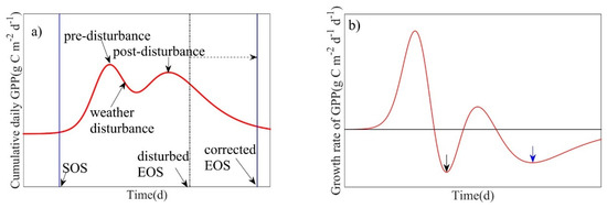 2.5. Response of Phenology Model to Disturbance and EOS Correction Approaches