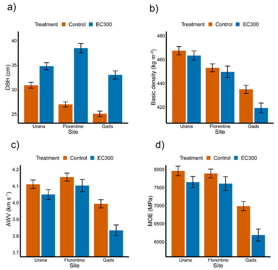 3.1. Commercial Thinning (EC300) vs. Control across Three Sites