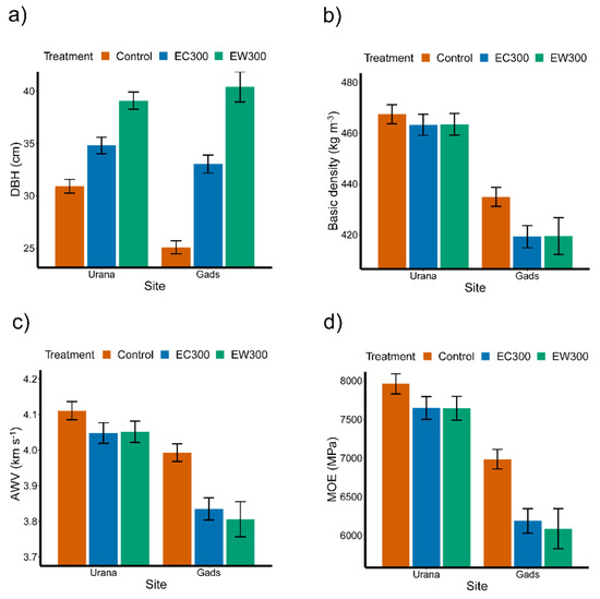 3.2. Commercial (EC300) and Non-Commercial (EW300) Thinning vs. Control at Urana and Gads