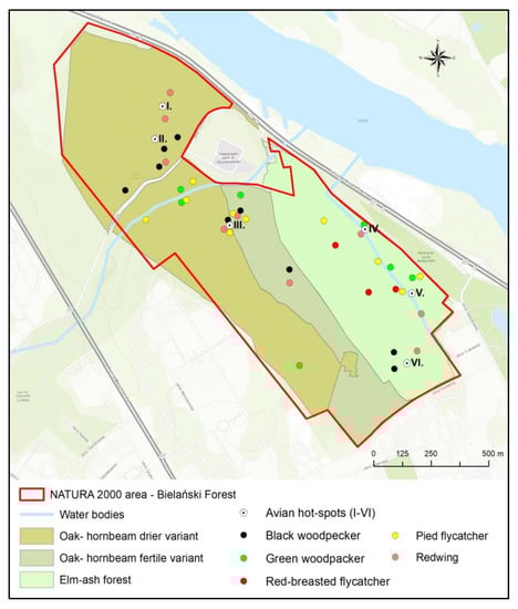 - The inventory of the avifauna in the area of Bielański Forest confirms the occurrence of many valuable species. The state of the population of the majority of the analyzed species is relatively stable. The key bird species of the NATURA 2000 study area seem to have adapted to urban conditions. A strong correlation between the noise distribution and certain species was not observed.