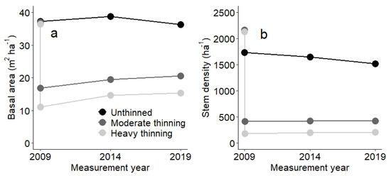 Neumann, M.; Hasenauer, H. Thinning Response and Potential Basal Area—A Case Study in a Mixed Sub-Humid Low-Elevation Oak-Hornbeam Forest. Forests 2021, 12, 1354. https://doi.org/10.3390/f12101354
