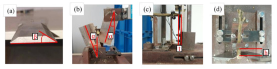 In the supported cutting test, the cutting direction was always perpendicular to the direction of the branch axis, and the cutting height had no significant effect on the peak cutting force, which was about 162 N. During the unsupported average cutting speed single-factor test, it was found through the camera pictures that the shear force would cause the branches to bend. To further investigate the effect of bending degree on the peak cutting force during unsupported cutting, the cutting height one-factor test was designed.
