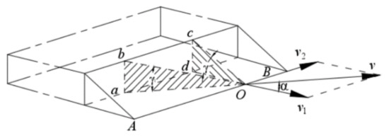 When the cutting tool slides through the branch, the dynamic wedge angle γ1 can be obtained from the geometric relationship as