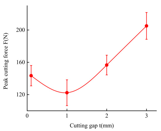 3.3.6. The Effect of Cutting Gap on Peak Cutting Force