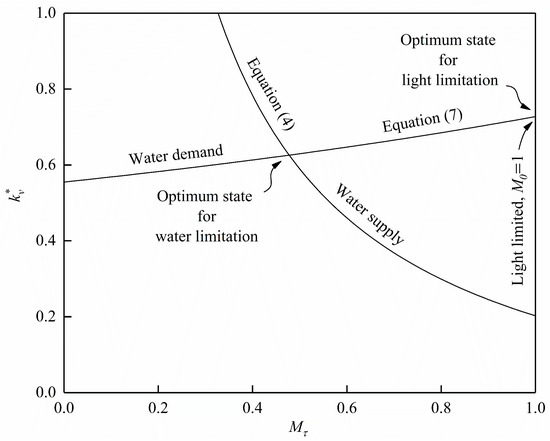 the canopy will be water limited, and is obtained by the simultaneous execution of Equations (4) and (7). At this time, the water supply of the system and the water demand of vegetation reach a dynamic equilibrium.