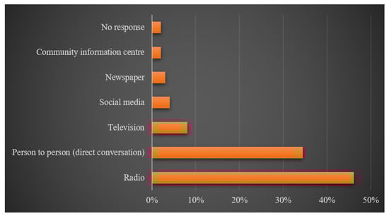 To commence with the data collection, it was deemed necessary to determine whether the respondents were aware, or had any knowledge, about the subject matter. Out of the 197 respondents, 98% stated that they were aware of the proposed mining of the Atiwa Forest Reserve for bauxite, while the remaining 2% stated that they were not aware. To determine the source of information, as presented in Figure 2, a majority, i.e., about 46% of the respondents stated that they heard about this issue on the radio. A total of 35% indicated that they heard about the proposed mining from other people (through conversation), 8% affirmed television as their source of information, whereas social media, newspapers, and community information centers had 4%, 3%, and 2%, respectively. The remaining 2% did not provide any answers. This, in a nutshell, gives a clear overview of the fact that the proposed mining of the Atiwa Forest Reserve is no secret to the people living in the fringe and that, not only has it caught the attention of international bodies, but the locals as well. This brings to light the essence of the forest reserve to various stakeholders.