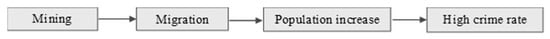 A diagram illustrating the connection between mining and high crime rates.