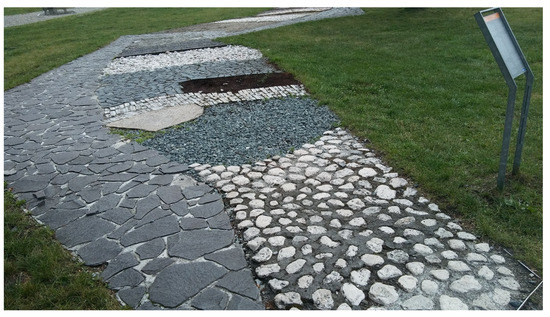 Sensory gardens play a therapeutic and preventive role. These include, for example, parks equipped with memory gyms—i.e., memory training devices, intended mainly for elderly people with signs of dementia, but if skillfully used, they can also be an attraction for other user groups. They can be equipped with “moto-sensory paths, i.e., a place intended to serve the elderly and people who experience limitations in mobility as a result of illness or injury. The proposal of the various available solutions is to help maintain or increase the mobility of the beneficiaries [29]. Moto-sensory pathways are used for therapy [29], as follows: