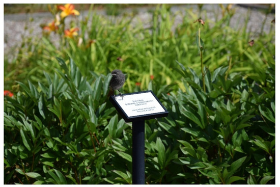 The inventory was carried out on the basis of the features considered important in spatial orientation by blind and partially-sighted people. The results of the field research showed the most commonly used solutions that facilitate relaxation, as well as independent spatial orientation, for blind and partially-sighted people, which include places identified by their smell, clear layout of paths, different path surfaces, and tips from other people (Figure 2, Figure 3, Figure 4 and Figure 5). Unfortunately, other amenities considered essential were less frequently represented, and such as tactile walking surface indicators, spatial models (e.g., communication lines and terrain), and applications on mobile devices did not occur in the gardens studied (Table 2). Thus, it can be concluded that in sensory gardens, despite many amenities in terms of the uniqueness of their arrangement, many possibilities for their better adaptation to the needs of people with disabilities have not been used. The features presented in Table 2, based on the recommendations of the PWD community [17], are therefore potential applications in sensory gardens and forests.