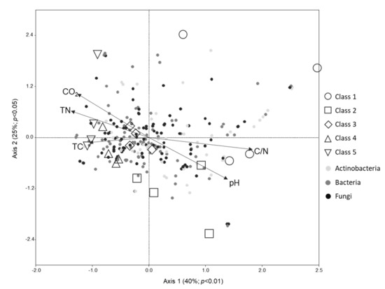- Ramette, A. Multivariate analyses in microbial ecology. FEMS Microbiol. Ecol. 2007, 62, 142–160. [Google Scholar] [CrossRef] [PubMed] [Green Version]