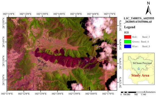 For this study, the hourly Mianning County meteorological dataset was downloaded from the China Meteorological Data Sharing Service Network, and the DEM data of ASTER GDEM version 2, Landsat™, ETM+, and Sentinel 2 were downloaded from the US Geological Survey Earth Probe. The time range of the meteorological dataset was 6–12 May 2020, and the time frequency was 1 h.