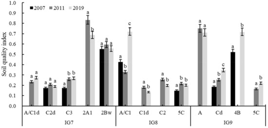 - Masto, R.E.; Chhonkar, P.K.; Singh, D.; Patra, A.K. Alternative soil quality indices for evaluating the effect of intensive cropping, fertilisation and manuring for 31 years in the semi-arid soils of India. Environ. Monit. Assess. 2008, 136, 419–435. [Google Scholar] [CrossRef] [PubMed]