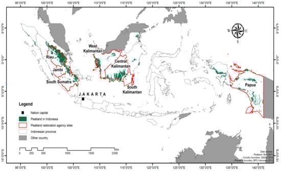 Distribution of peatlands and peatland restoration areas in Indonesia, adapted from Ref. [25].