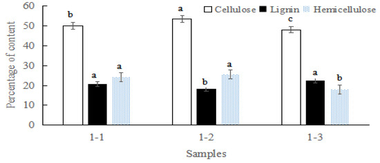 3.1. The Content of Cellulose, Lignin, and Hemicellulose