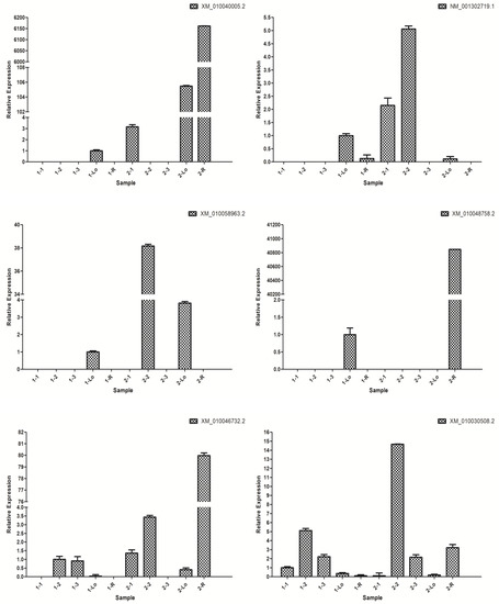 - Livak, K.J.; Schmittgen, T.D. Analysis of relative gene expression data using real-time quantitative PCR and the 2−∆∆Ct method. Methods 2001, 25, 402–408. [Google Scholar] [CrossRef] [PubMed]