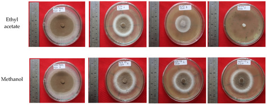 3.6. Bioactivity of Fungus-Comb Extract against Wood-Staining Fungi