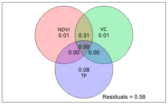 Given the regional differences, the degree of correlation of NDVI, VC, and TP is also different [76,77]. In Yan’an, the path coefficient of NDVI, VC, and TP affecting ecological security index was 0.11, 0.11, and 0.26 (Figure 8) indicating that the direct effect of TP on ecological security index is greater than NDVI and VC. Meanwhile, a random forest model was used to simulate the effects of NDVI, VC, and TP on advanced LES status (high level and medium-high level) (Figure 9). The optimal threshold of NDVI, VC, and the temperature was 0.20–0.64, 0.20–0.55, and 11.2–13 °C, respectively, which contributed to advanced LES status (high level and medium-high level). Furthermore, the Venn diagram is committed to analyzing and quantifying the individual and common interpretation of multiple environmental variables [78]. As shown in Figure 10, LES was explained separately by NDVI, VC, and TP with 1%, 1%, and 8%, respectively. Together, NDVI and VC jointly explained 31% of LES, which were co-correlated and had a significant synergistic effect on it. Based on the 2030 agenda aim for sustainable development, natural resources and social and economic development are needed to be consistent thoroughly with healthy ecosystem cycles [13,79]. Therefore, the effect of driving variables with their significant synergistic interactions, explanatory threshold, and contribution rate on land ecological security must be regulated chronically for achieving regional ecological stability and sustainable development [80].