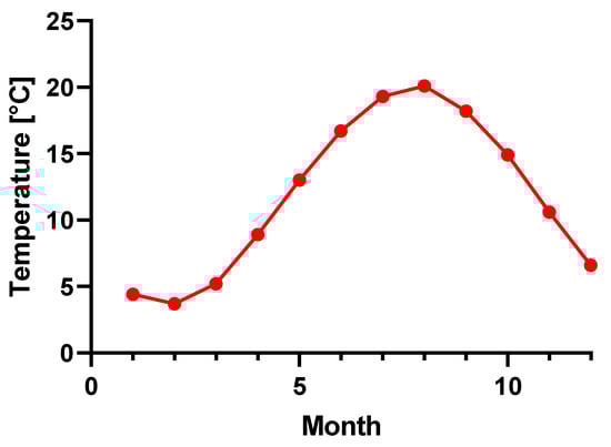 Average soil temperature 100 cm below the layer in Ljubljana in the period between 1961–2016 [].