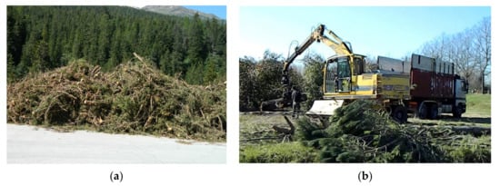 The cost of transporting biomass from the origin to its destination represents a significant share of the overall costs of supplying woody biomass in an energy chain. Some studies attribute to this cost a percentage between 25% and 50% of the total cost of the delivered biomass, depending on the transport distance, the bulk density of the load and the moisture content of the biomass transported [,]. Increasing the efficiency of transport operations should therefore lead to a significant reduction in related costs and with it also a probable reduction in environmental impacts.