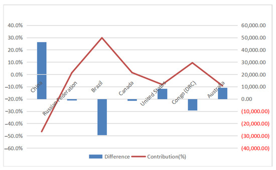 According to World Bank data, seven countries with forest area over 1 million square kilometers have been measured change value in forest area. The contribution to global deforestation and forest degradation as measured with rate of contribution.