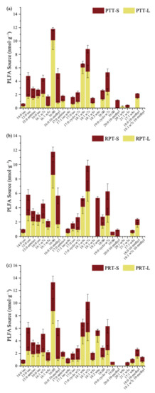 - Williams, M.A.; Myrold, D.D.; Bottomley, P.J. Carbon flow from 13C-labeled straw and root residues into the phospholipid fatty acids of a soil microbial community under field conditions. Soil Biol. Biochem. 2006, 38, 759–768. [Google Scholar] [CrossRef]