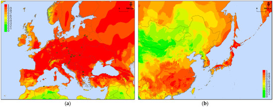 - Fick, S.E.; Hijmans, R.J. Worldclim 2: New 1-km spatial resolution climate surfaces for global land areas. Int. J. Climatol. 2017, 37, 4302–4315. [Google Scholar] [CrossRef]
